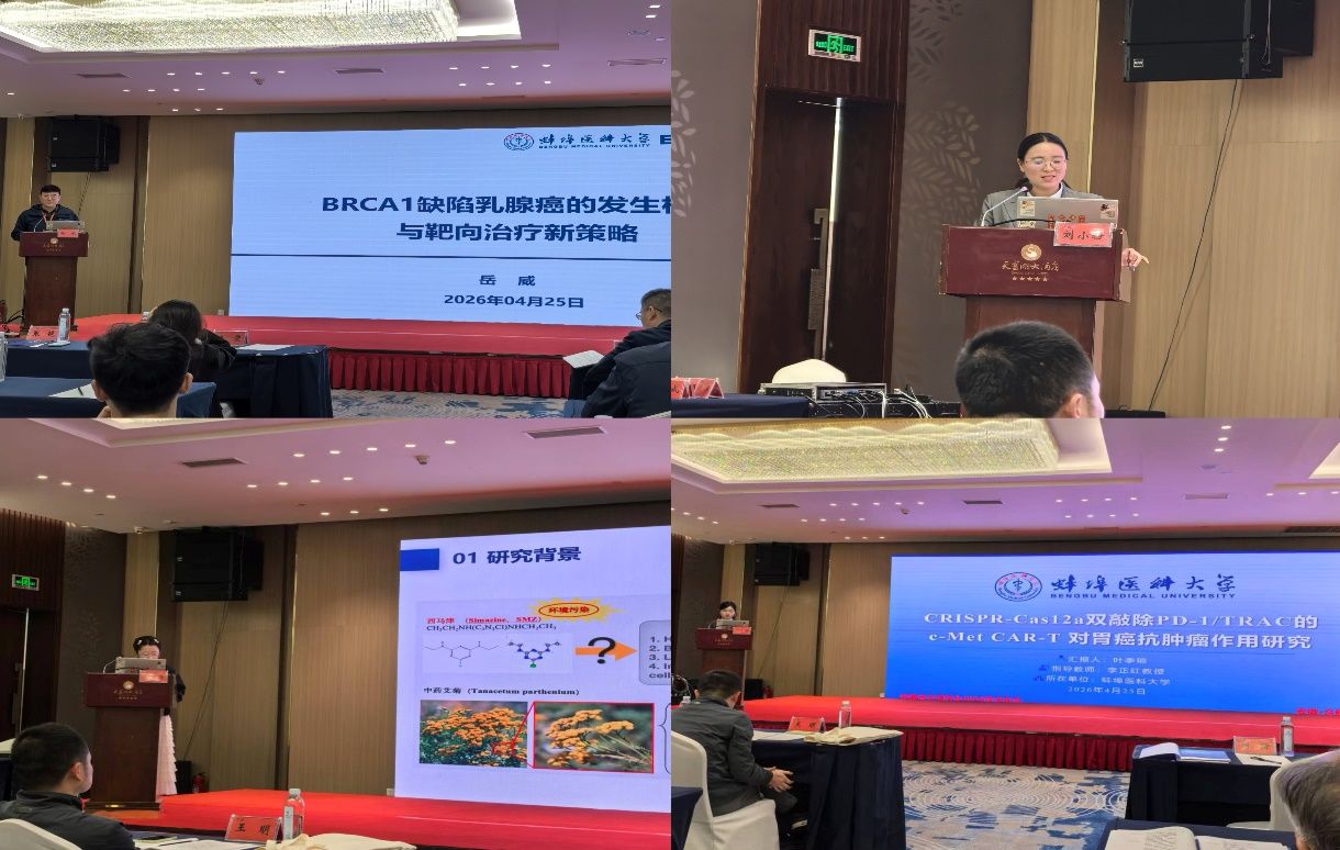 经过学科团队积极动员,我校师生共投稿摘要21篇,展示了我校生理学近年来学科建设成效。岳威副研究员作了题为《BRCA1缺陷乳腺癌的发生机制和靶向治疗新策略》的大会报告;刘小粉副教授分享了整合课程建设的实践和探索。研究生叶季瑄和赵安博在青年学者论坛中展示了最新研究进展。与会师生踊跃提问,与各位专家展开了深入的学术讨论。